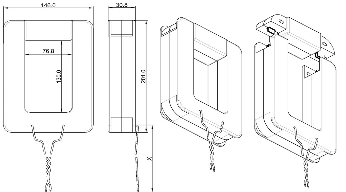 Jiangyin Spark SCT-3000 Series split-core current transformer AC current from 400 to 3000 Amps passing through the center conductor. Split core CTs are designed for fast and easy installation.The split core design permits non-contact current measurements through magnetic field induction without requiring that the primary wire be taken offline and disconnected for CT installation.This method permits a safer,easy and portable current measurement. An internal precision burden resistor across the secondary winding of the CT provides a safe low voltage output and permits safe opening of the secondary
