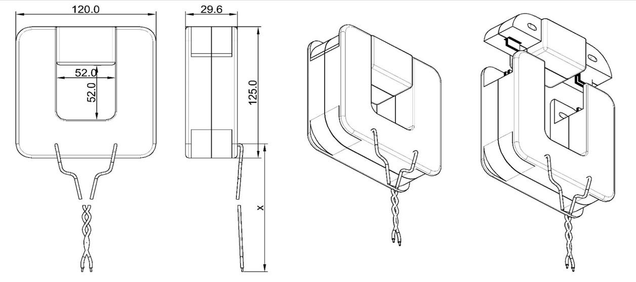 Jiangyin Spark SCT-2000 Series split-core current transformer AC current from 100 to 1500 Amps passing through the center conductor. Split core CTs are designed for fast and easy installation.The split core design permits non-contact current measurements through magnetic field induction without requiring that the primary wire be taken offline and disconnected for CT installation.This method permits a safer,easy and portable current measurement. An internal precision burden resistor across the secondary winding of the CT provides a safe low voltage output and permits safe opening of the secondary