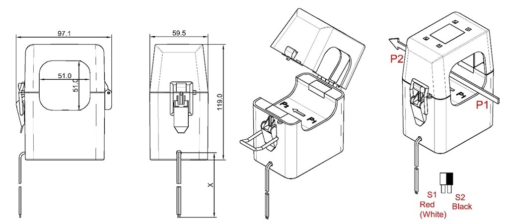 Jiangyin Spark XH-SCT-T50 Series split-core current senses AC current from 600 to 1000 Amps passing through the center conductor. Split core CTs are designed for fast and easy installation.The split core design permits non-contact current measurements through magnetic field induction without requiring that the primary wire be taken offline and disconnected for CT installation.This method permits a safer,easy and portable current measurement.