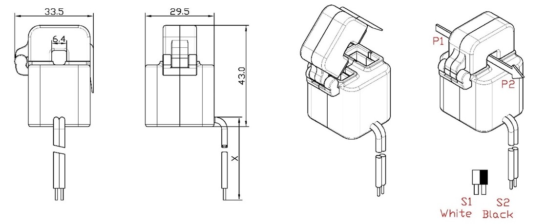 Jiangyin Spark XH-SCT-T06 energy monitoring split-core current transformer, AC current from 0.2A to 80 Amps passing through the center conductor.Split core current transformers are designed for fast and easy installation.The split core design permits non-contact current measurements through magnetic field induction without requiring that the primary wire be taken offline and disconnected for CT installation.Built in resistor provides 0.333V output ,this method permits a safer,easy and portable current measurement.